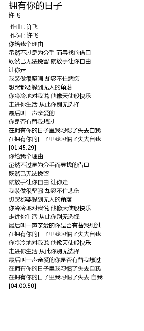 | [03:48.73] | 在拥有你的日子里我习惯了失去 自我 |