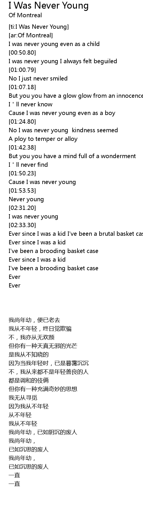 | [01:44.11] | But you you have a mind full of a wonderment |
