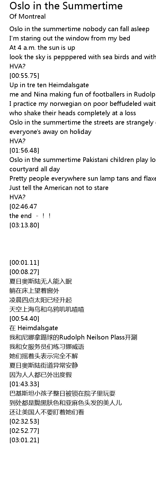 | [00:35.13] | Oslo in the summertime nobody can fall asleep |