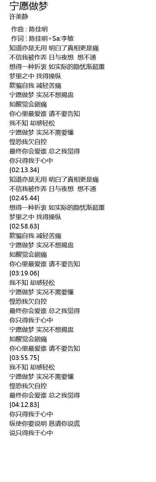 | [03:23.86] | nìng yuàn zuò mèng shí kuàng bù xū yào dǒng |