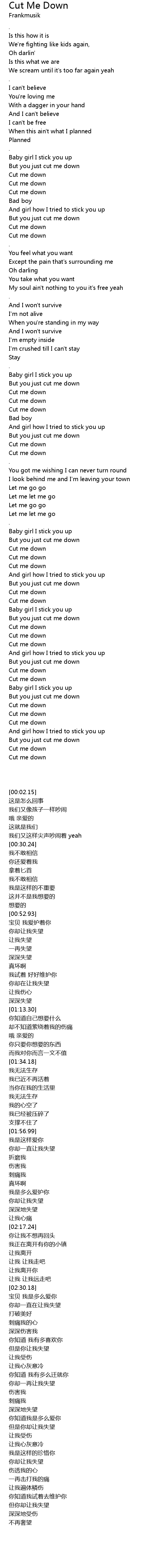 But you just cut me down |