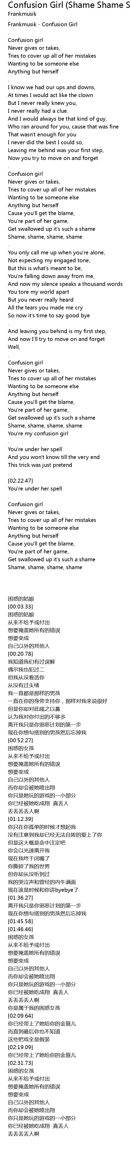 Song Confusion Girl (Shame Shame Shame)