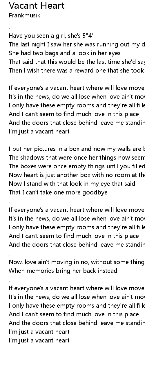 If everyone's a vacant heart where will love move in |