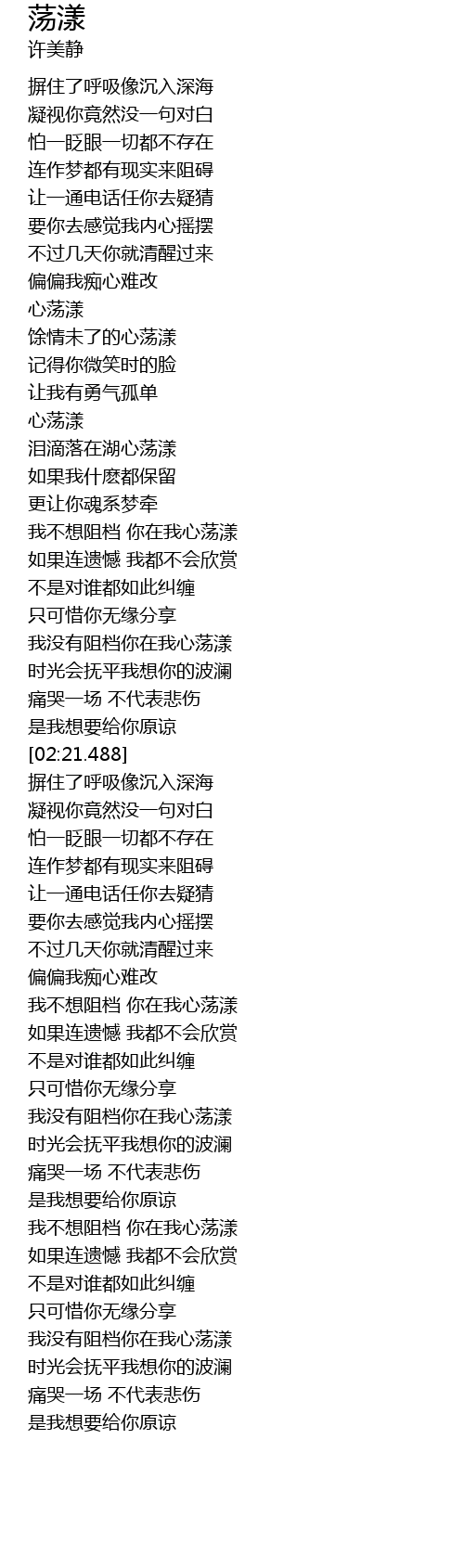 | [01:38.600] | 我不想阻档 你在我心荡漾 |