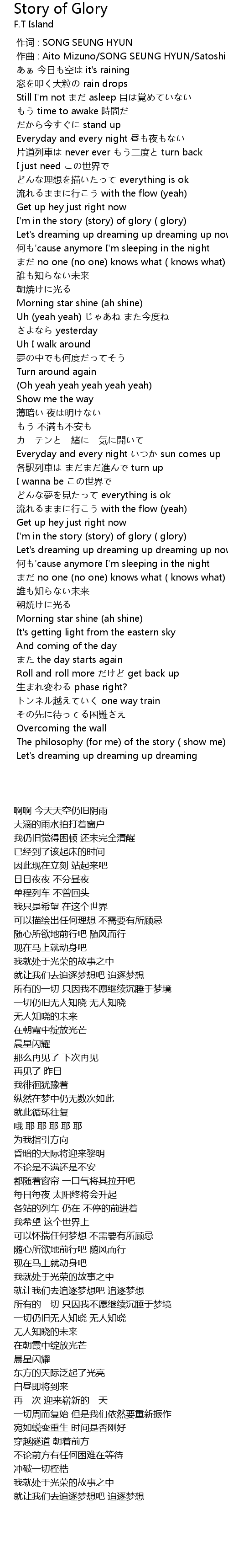 | [00:53.007] | I'm in the story (story) of glory ( glory) |