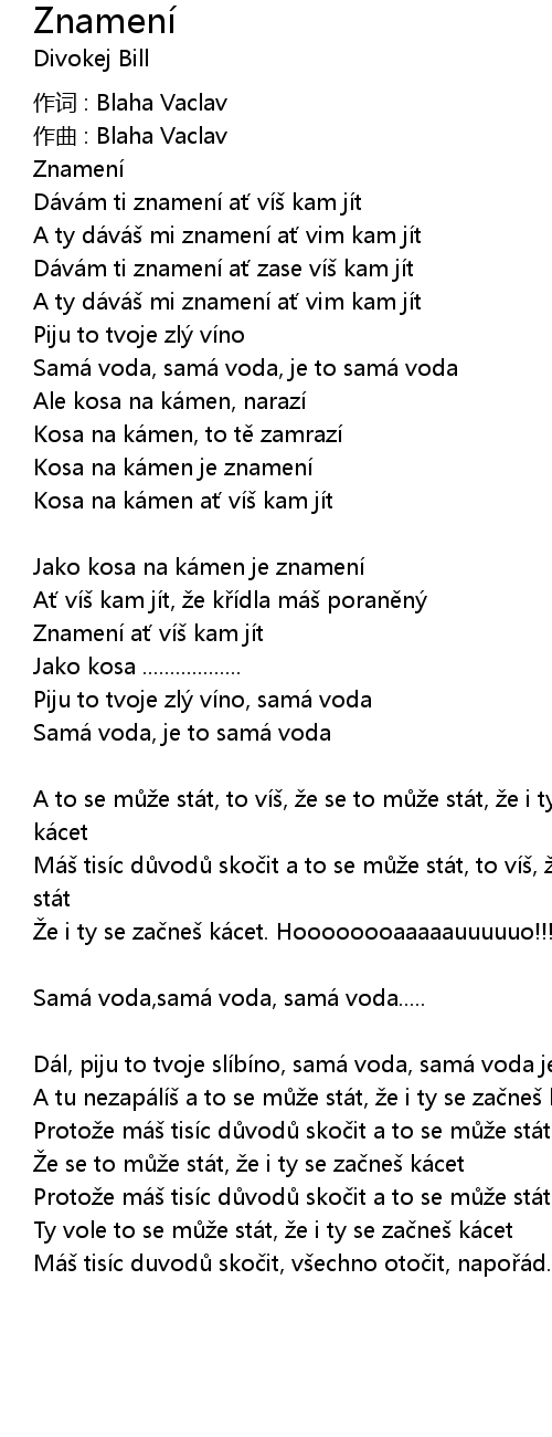 | Dá l, piju to tvoje slí bí no, samá voda, samá voda je to samá voda | |