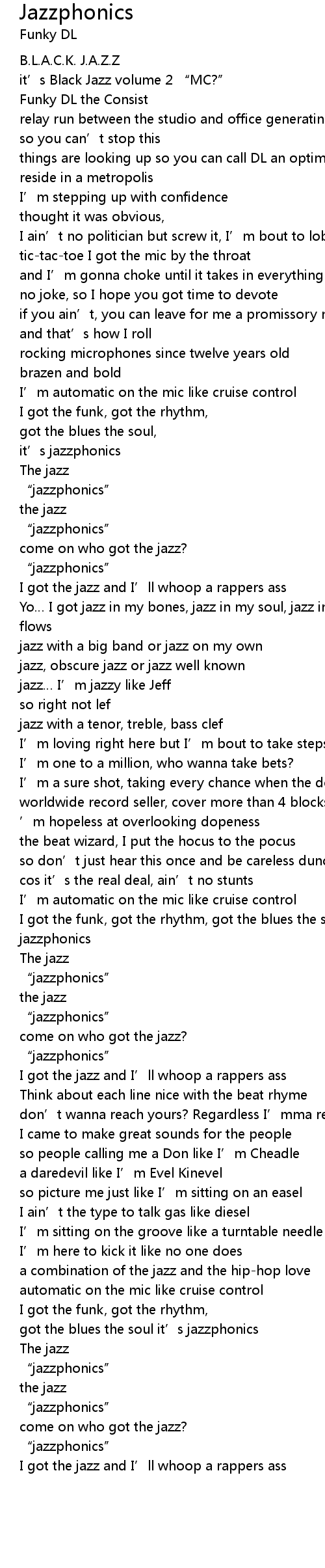 | [02:18.23] | I got the funk, got the rhythm, got the blues the soul it’s jazzphonics |