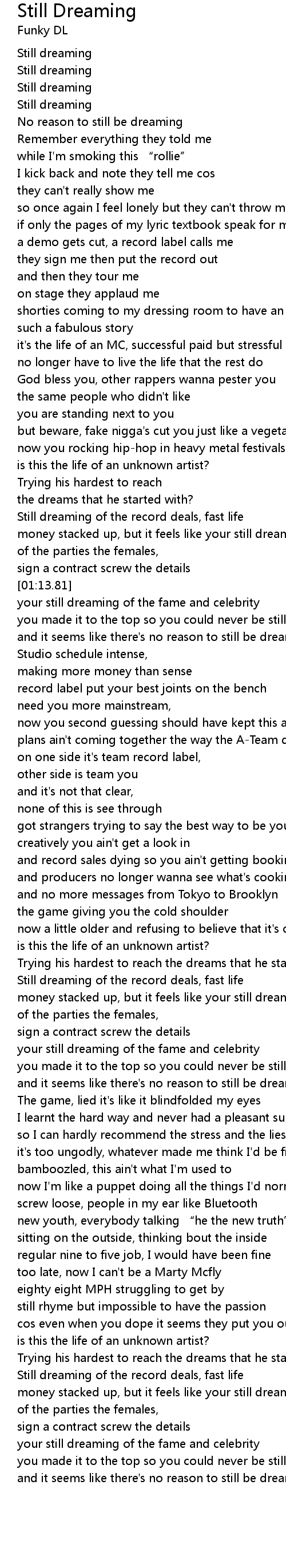 | [03:21.25] | your still dreaming of the fame and celebrity |