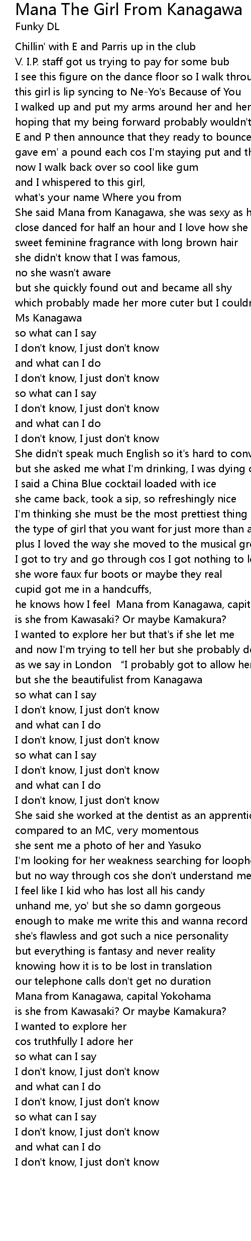 | [00:48.17] | She said Mana from Kanagawa, she was sexy as hell |