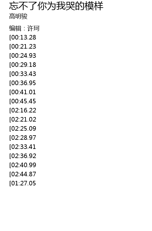 | [03:09.28][02:33.41][01:06.90] | wàng bù liǎo nǐ wèi wǒ kū de mú yàng |