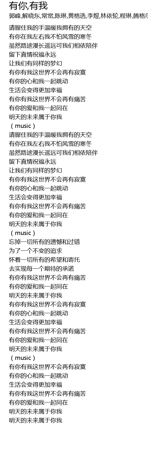 | [06:52.32] | 有你有我这世界不会再有痛苦 |