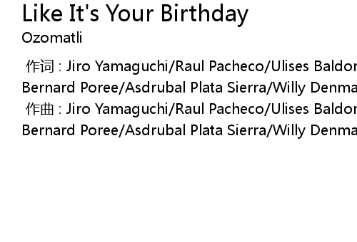 | [00:00.000] | 作曲 : Jiro Yamaguchi/Raul Pacheco/Ulises Baldomero Bella/Justin Bernard Poree/Asdrubal Plata Sierra/Willy Denmark Abers |