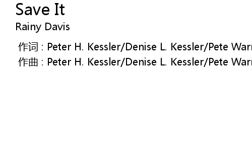| [00:00.000] | 作曲 : Peter H. Kessler/Denise L. Kessler/Pete Warner/Rainy Davis |