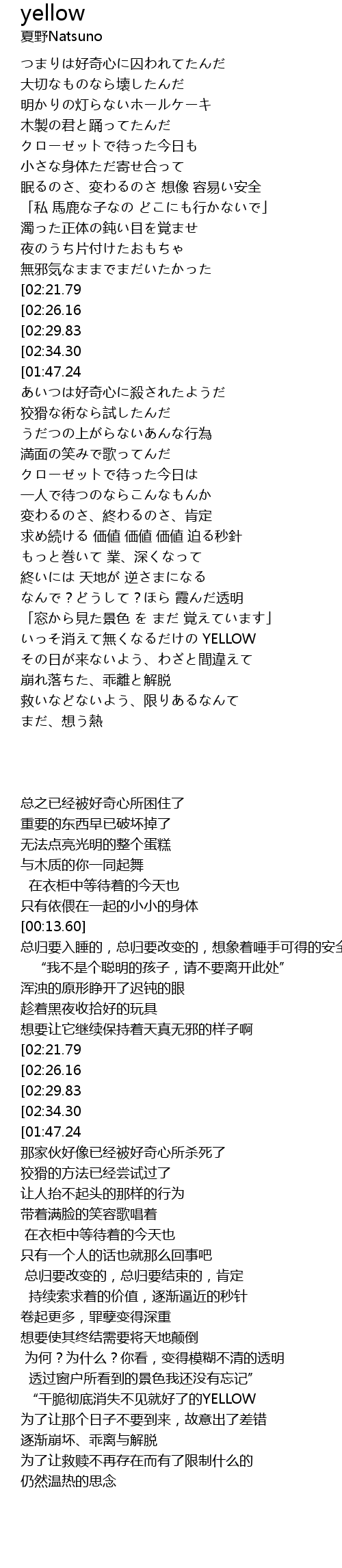 | [01:39.46] | いっそ消えて無くなるだけの YELLOW |