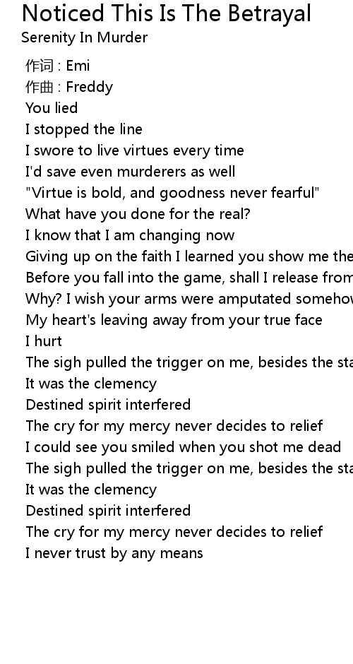 | [01:58.877] | The cry for my mercy never decides to relief |