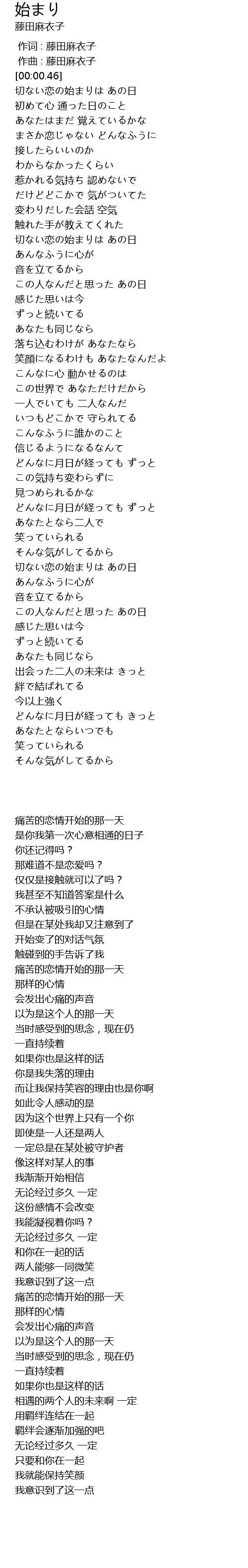 | [03:01.54] | 切ない恋の始まりは あの日 |