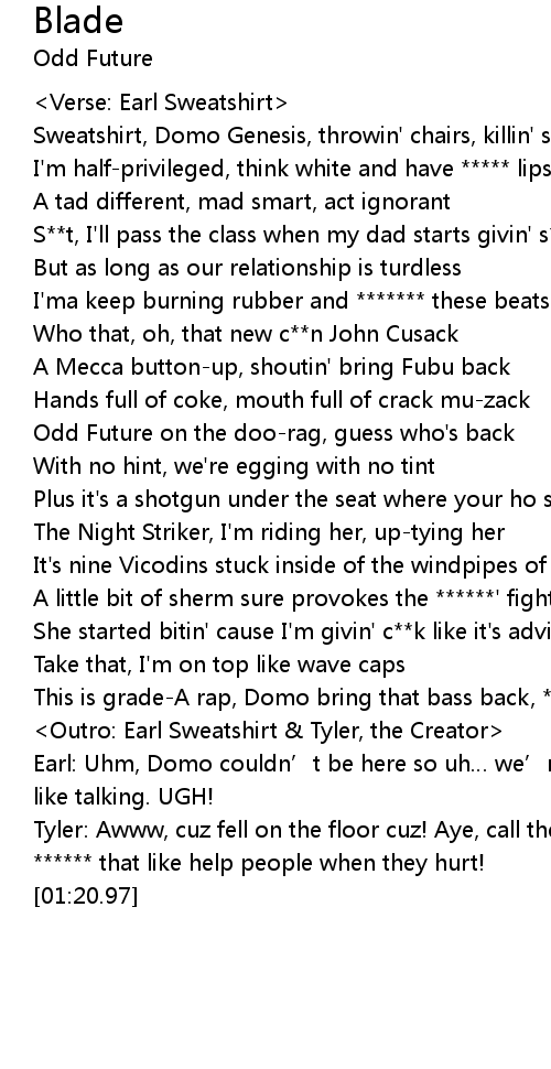 | [01:04.68] | Outro: Earl Sweatshirt Tyler, the Creator |