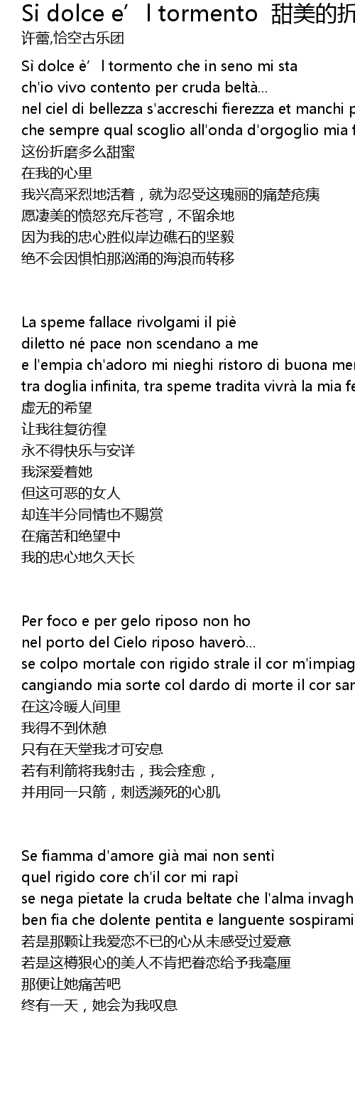 | ben fia che dolente pentita e languente sospirami un dì... | |