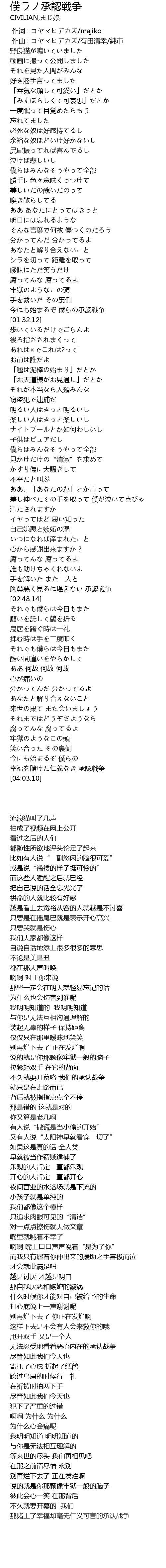 | [01:26.21] | 今にも始まるぞ 僕らの承認戦争 |