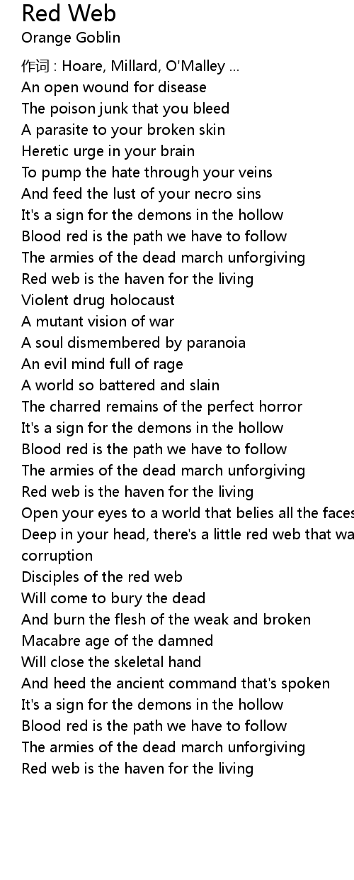 | Deep in your head, there' s a little red web that was weaved by the corpse of corruption | |