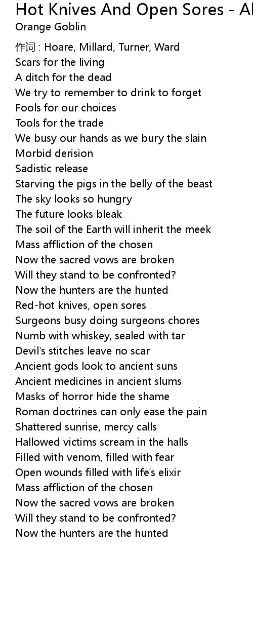 | Song | Hot Knives And Open Sores - Album Version (Explicit) |