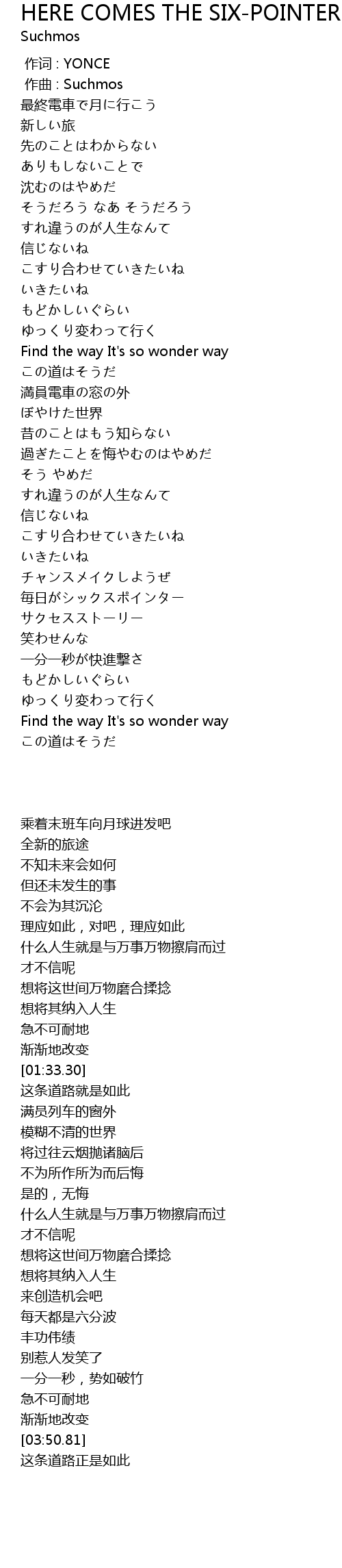 | [01:33.30] | Find the way It's so wonder way |