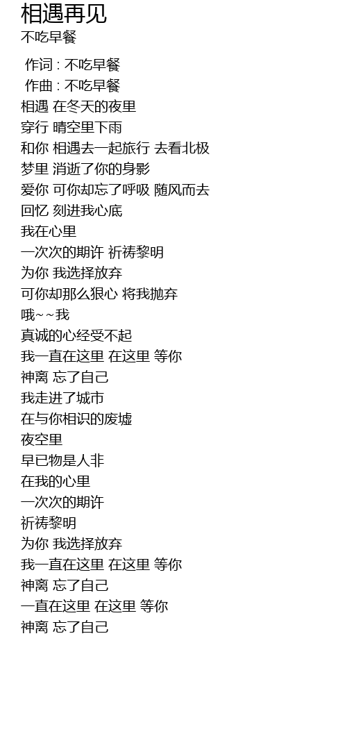 | [00:01.000] | 作曲 : 不吃早餐 |
