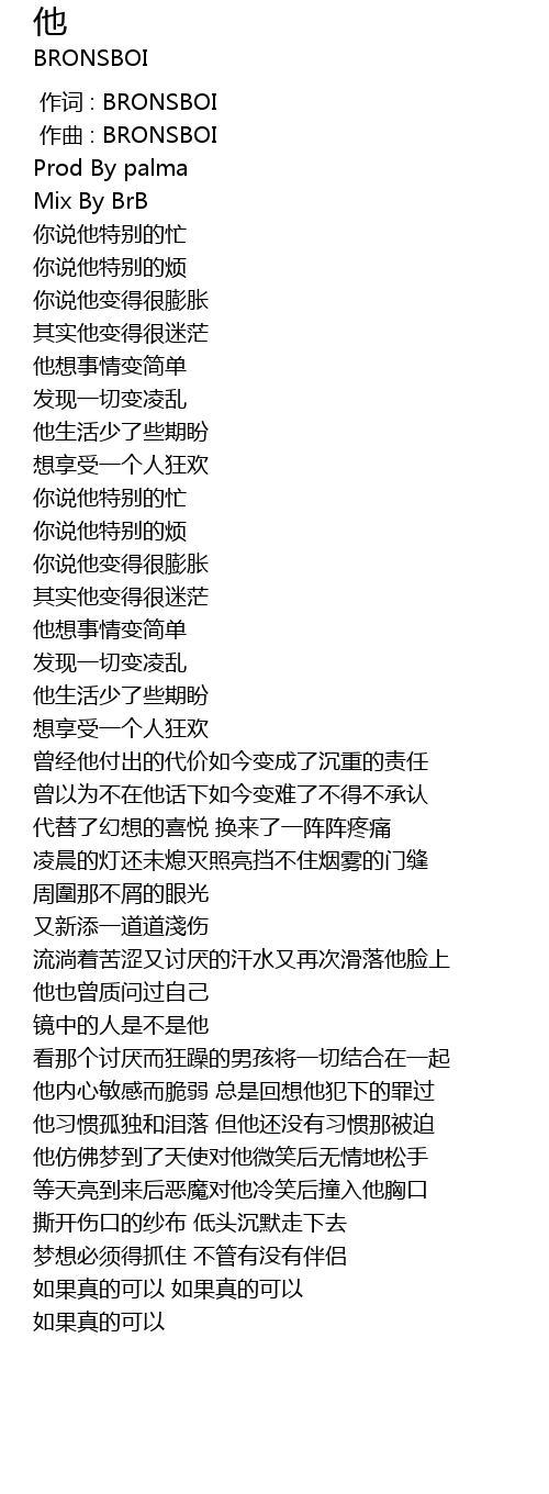 | [00:00.000] | 作词 : BRONSBOI |