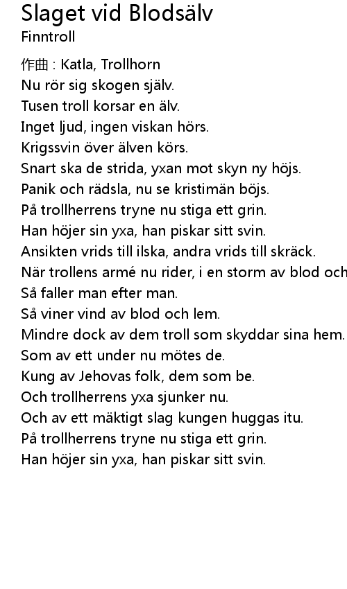 | När trollens armé nu rider, i en storm av blod och träck. | |