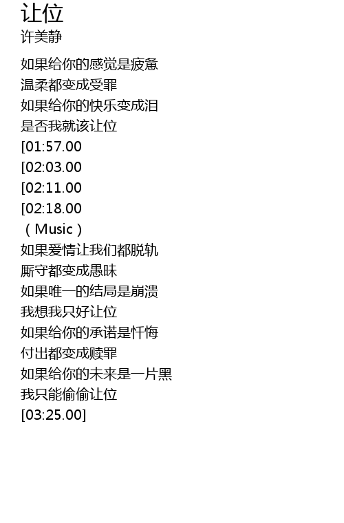 | [03:17.00] | 我只能偷偷让位 |