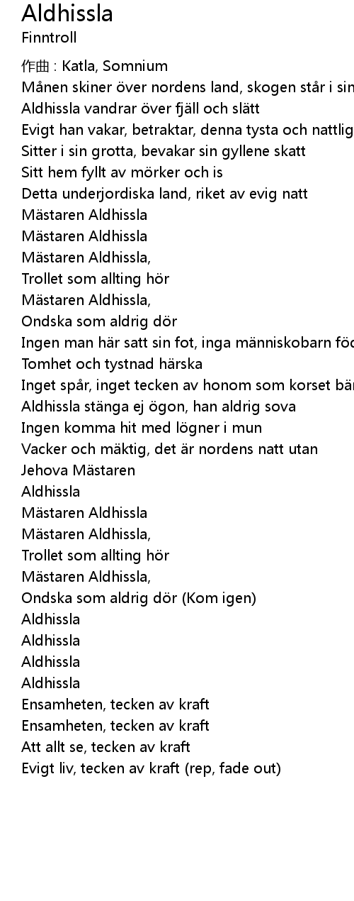 | Song | Aldhissla |