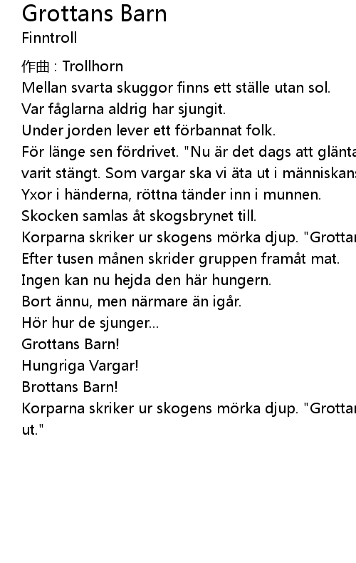 | Korparna skriker ur skogens m rka djup. " Grottans barn har ntligen kommit ut." |