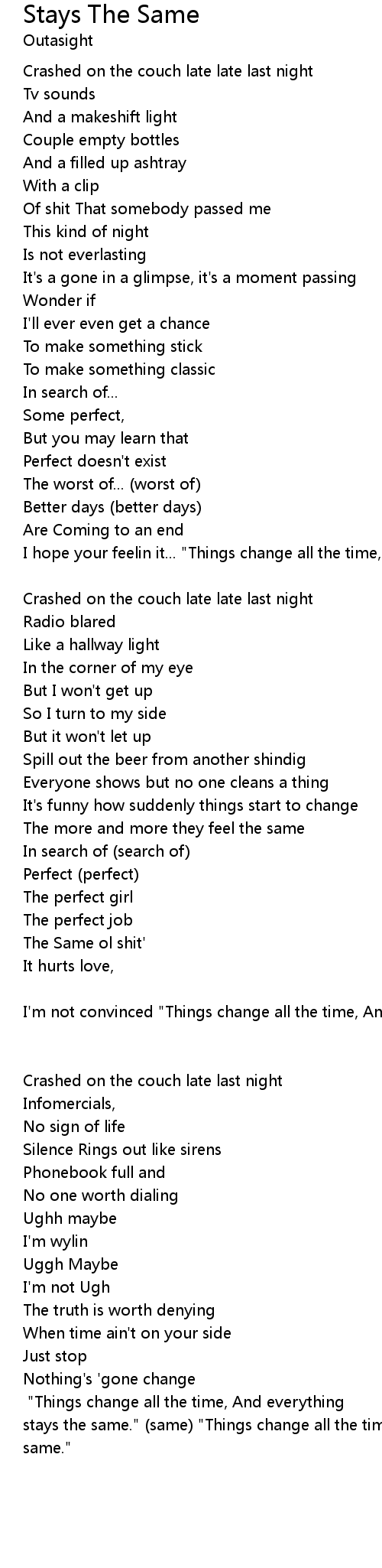 I'm not convinced "Things change all the time, And everything stays the same." (same) [x2] |