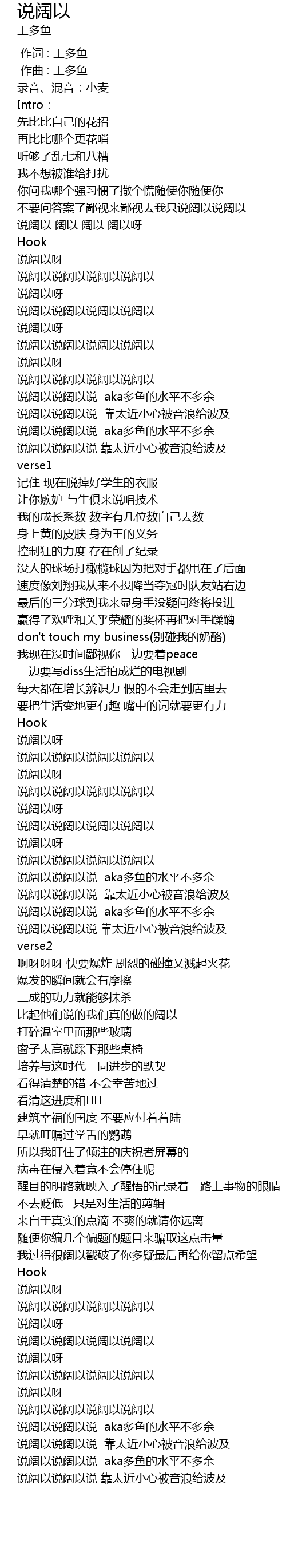 | [01:58.993] | 说阔以说阔以说 aka多鱼的水平不多余 |