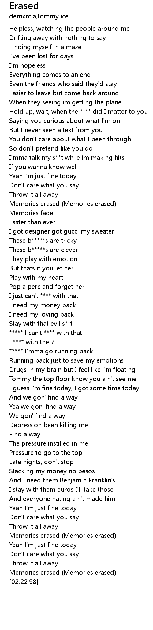 | [00:32.32] | Hold up, wait, when the **** did I matter to you |