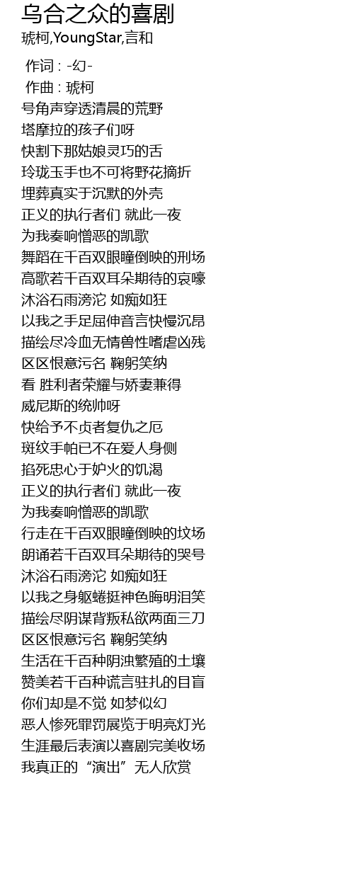 | [01:06.077] | 为我奏响憎恶的凯歌 |