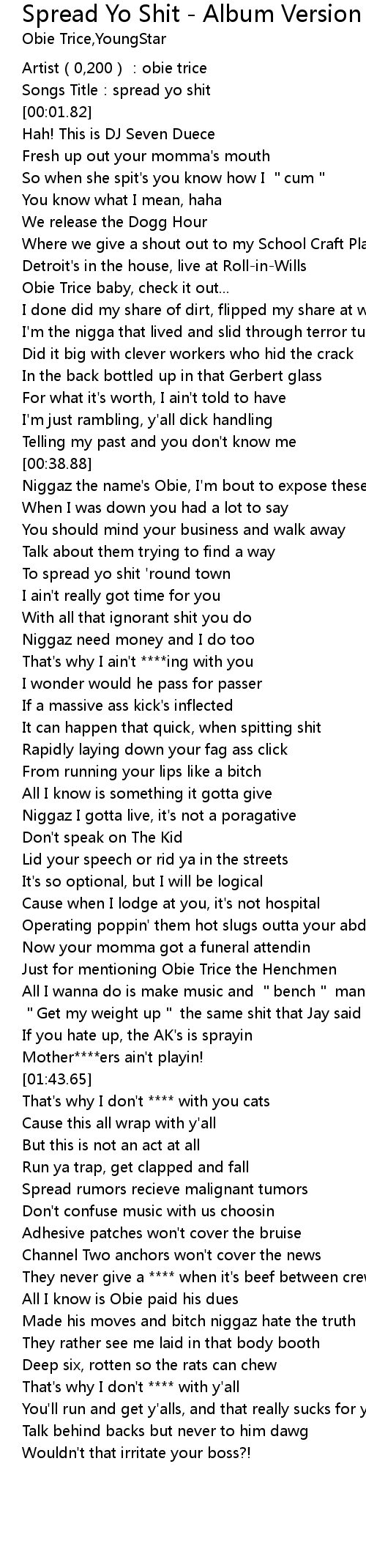 | [00:00.69] | Songs Title:spread yo shit |