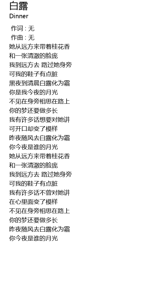 | [00:46.475] | hei ye dao qing chen bai lu hua wei shuang |