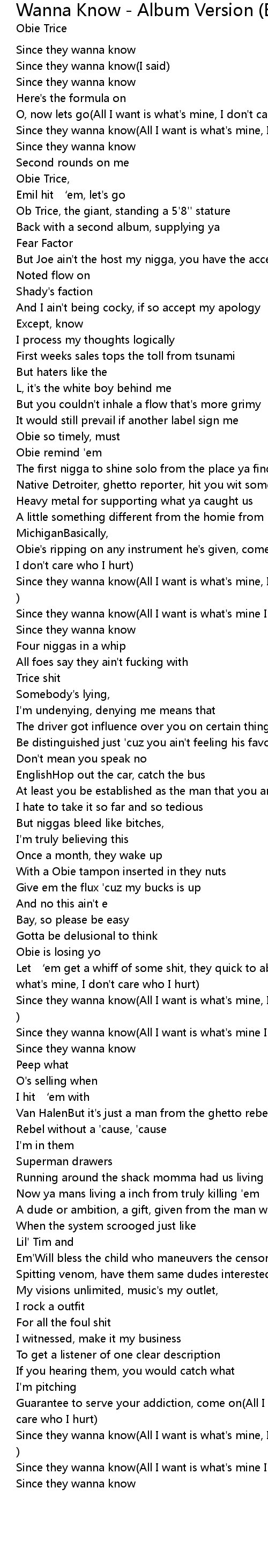 | Since they wanna know(End what's right and [Incomprehensible]) | |