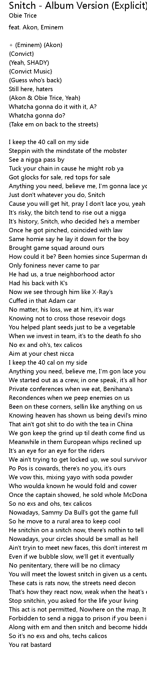 Just don't whatever you do, Snitch |