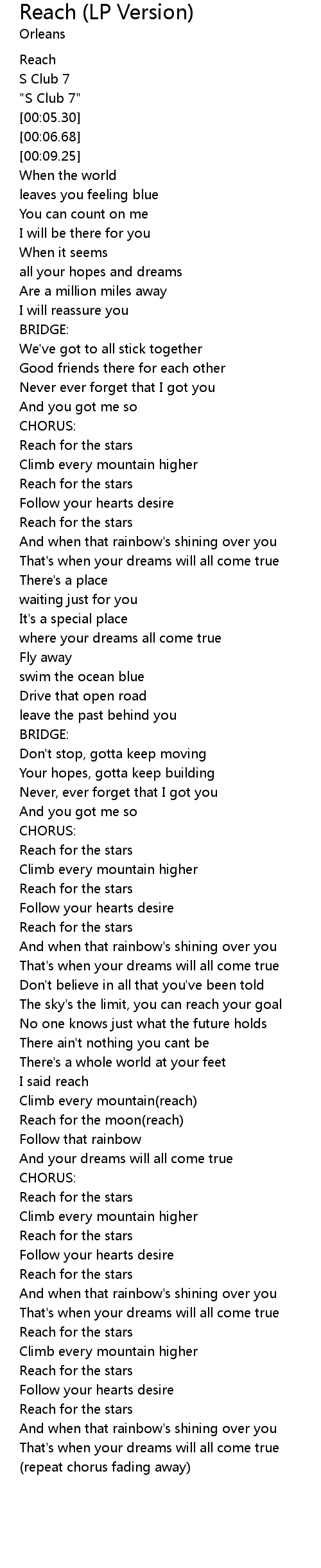 Reach (LP Version) Lyrics