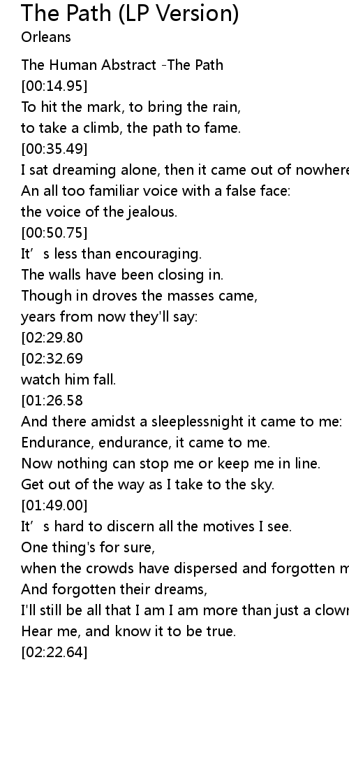 | [01:31.14] | Endurance, endurance, it came to me. |