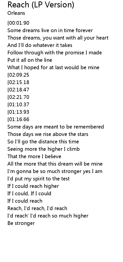 Reach, I'd reach, I'd reach |