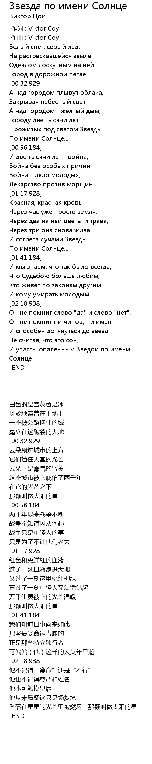 作词 : Viktor Coy |