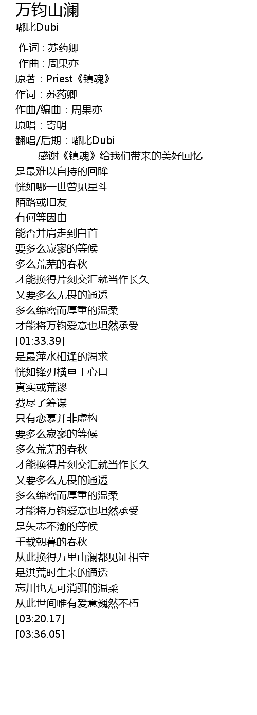 | [00:02.31] | 原著:Priest《镇魂》 |