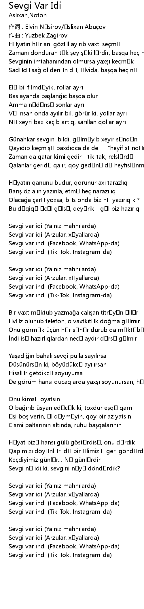 | Sevgi var indi (Tik-Tok, Instagram-da) | |
