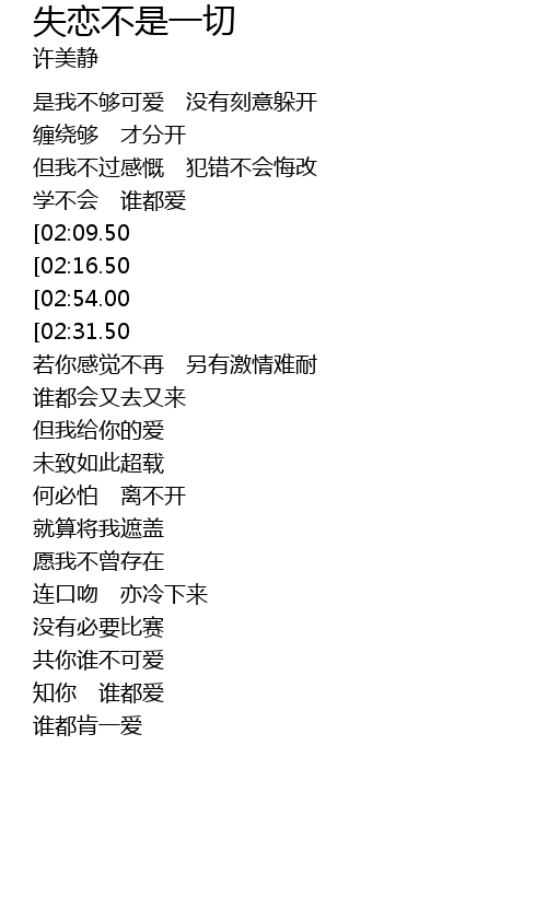 | [02:39.50][02:09.50][00:54.00] | 想恋不是发誓 失恋不是一切 |