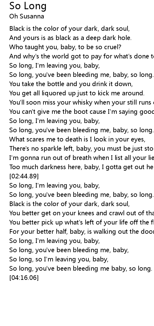So long, you've been bleeding me baby, so long. |