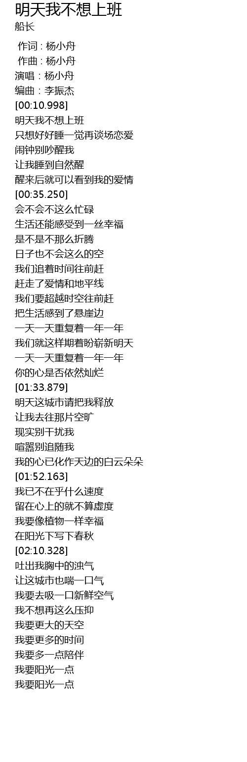 | [00:17.507] | míng tiān wǒ bù xiǎng shàng bān |