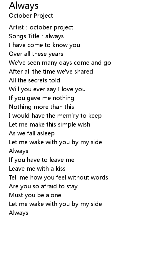 | [00:02.42] | Songs Title: always |